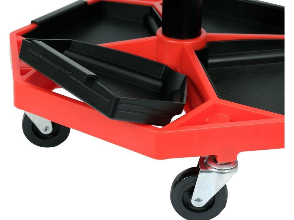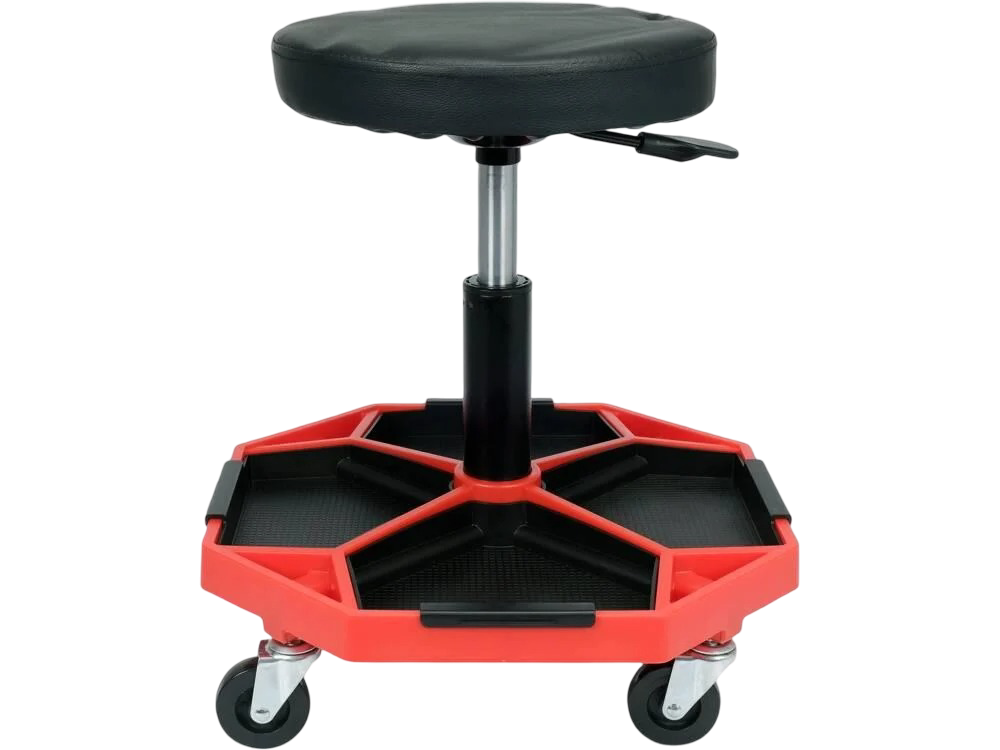 مقعد ورشة عمل دوار مزود بحشوات لتخزين الأغراض الصغيرة.
